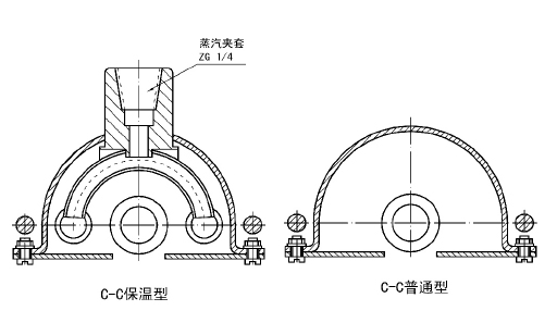 结构形式为“普通型”-D“保温型”-W两种,保温型装有加热或冷却装置。该装置加热时可用蒸汽,蒸汽压力不大于0.6MPa,冷却时可用循环水,这样可以调节介质的流动性能,保温套接管尺寸为G1/4内螺纹。