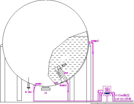 发射单元通过容器壁发射超声波,以声速在液体中传播的超声波信号的速度介于通过容器内壁反射的被滤掉的信号与通过液面反射回的信号的速度中间。超声波传感器二次接收到得反射信号的时间差正比于液面高度,计算中任何其他的多路反射都被补偿掉。 测量连续液位的。超声波传感器安装在罐或容器的底部,超声波在通过液体的时间差指示出液面高度,并被转换成模拟输出信号,还可以提供高低液位报警的开关量输出信号。 适用于点液位或空管的测量并提供开关量输出信号。超声波传感器安装在罐或管道的侧壁,测量窗口通过接收传感器是否接收到反射声波来指示在测量点是否有液体存在,有反射表明有液体,反之,则没有液体。 外测液位在液化气卧罐的实景拍摄